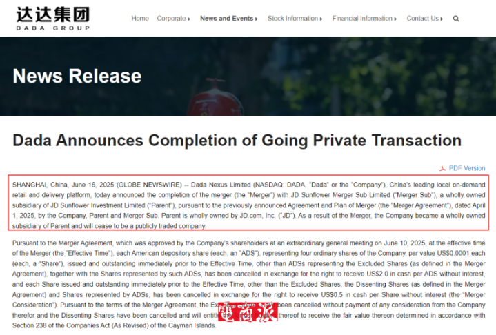 今年6月,“即时零售第一股”达达集团宣布,与京东集团的私有化交易完成并自愿从美股退市;